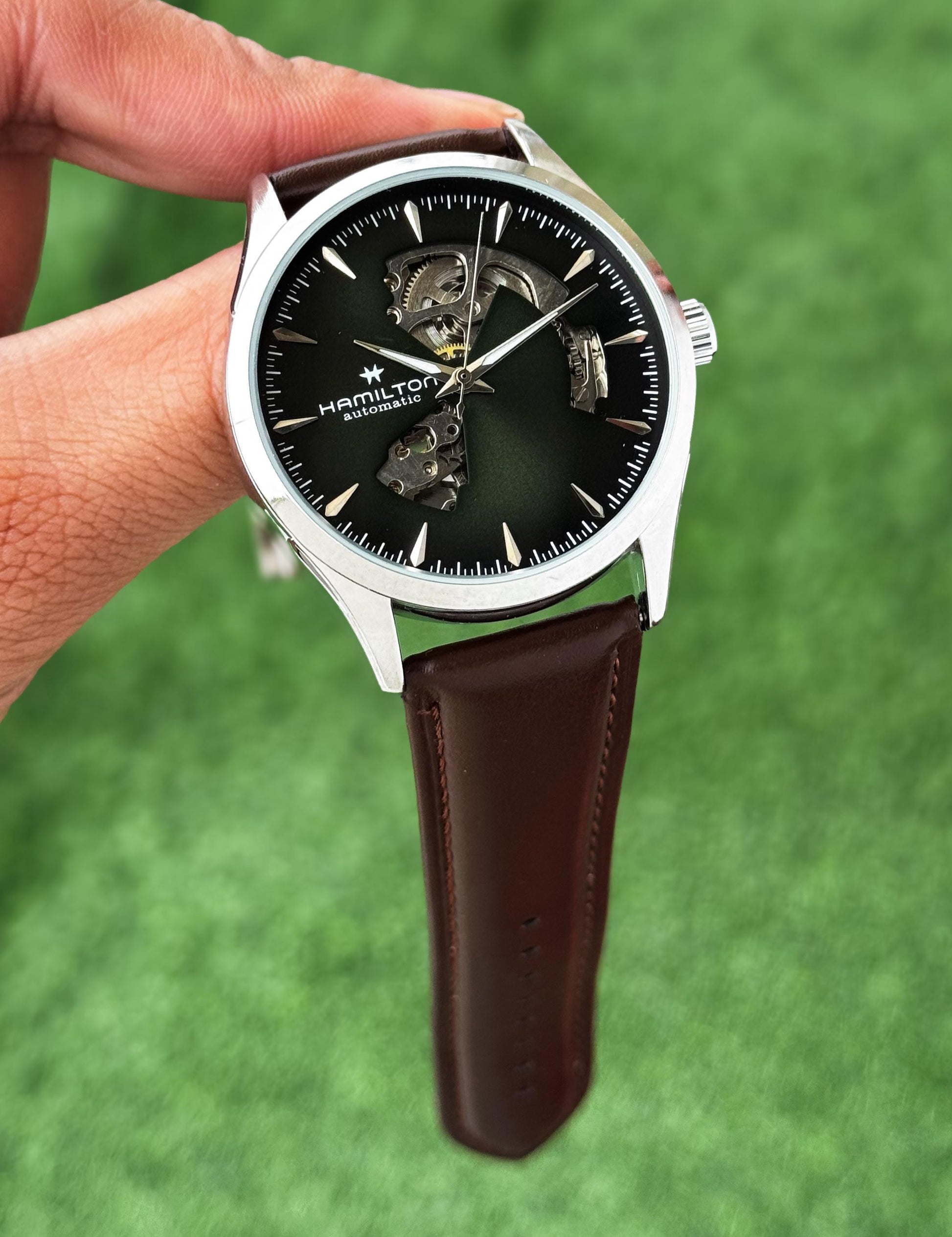 ✅*Hamilton Men’s Automatic Skeleton Watch – Silver Case & Leather Strap*✅