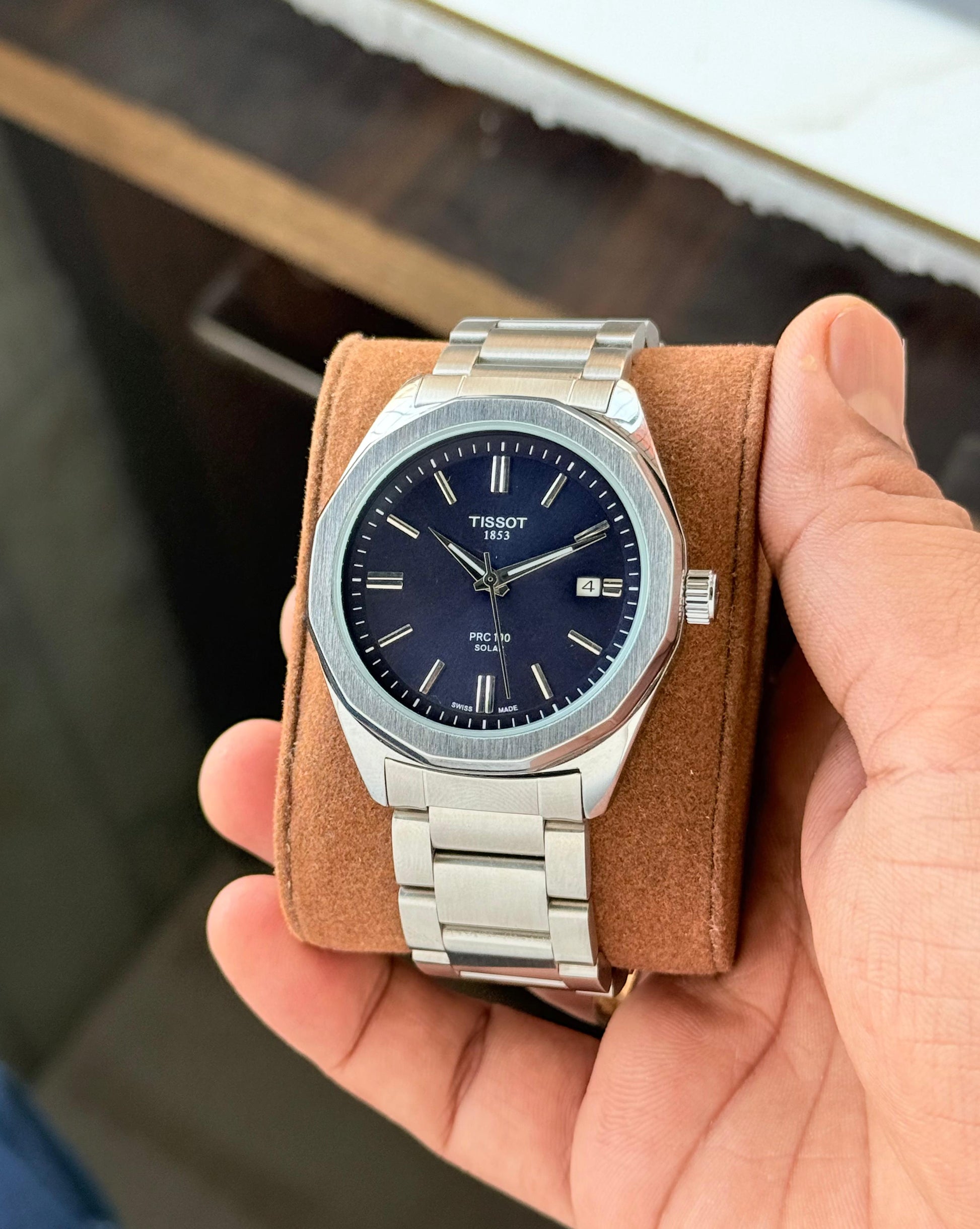 ✅Close your eyes and think of a pure Swiss watch and you’ll see the PRC100Solar . Named after the street that leads to Tissot's home in the Swiss mountains, it’s Tissot’s icon: round, classic, mechanical, ageless. ✅